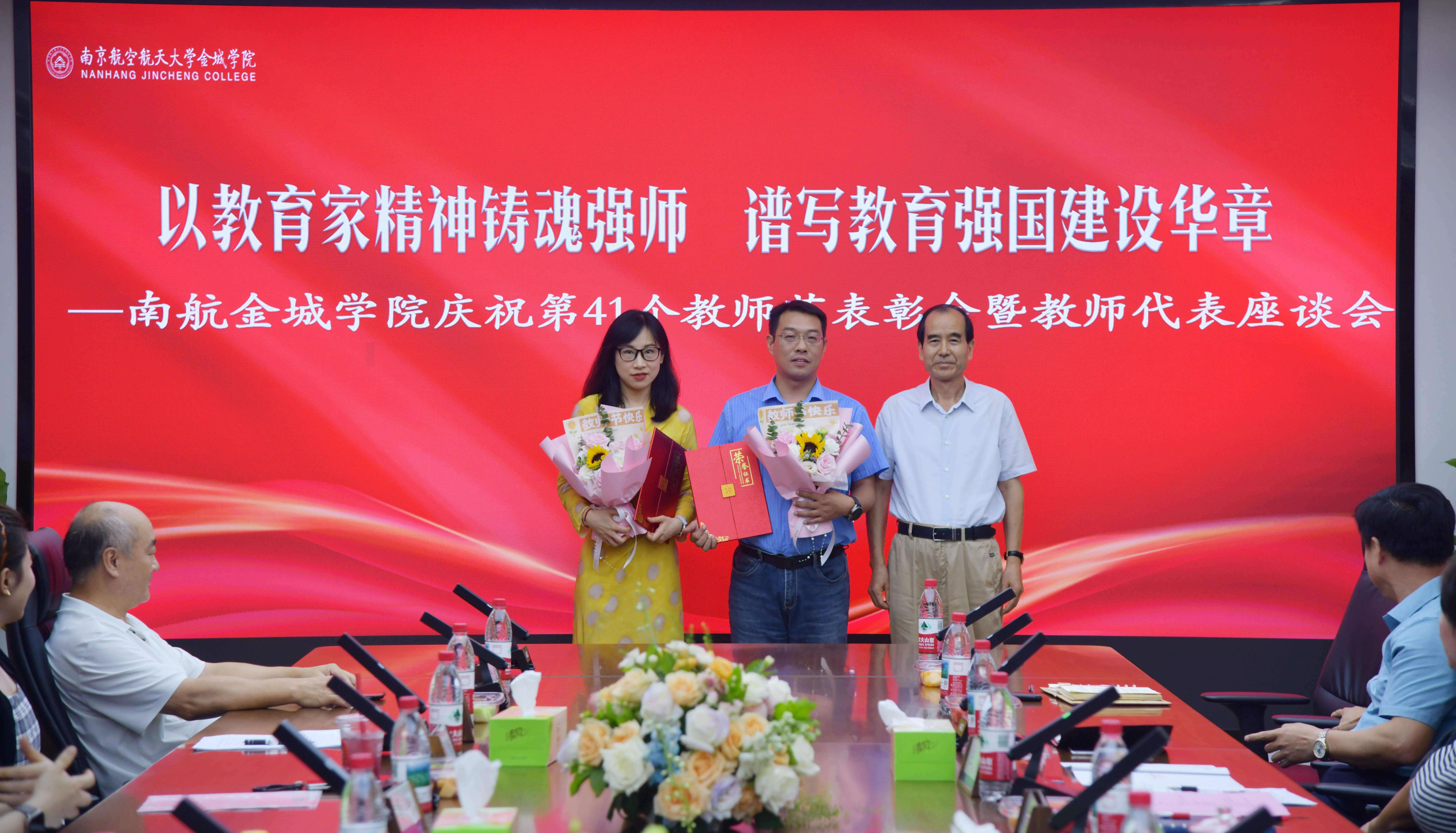 9月10日下午,学校在德馨楼501会议室隆重举行教师节表彰暨教师代表座谈会。学校理事长曹忠葆、校长陈旭、党委书记戴泉晨、副校长王萌、副校长郭建礼,职能部门、二级学院相关人员以及获奖教师、教师代表参加会议。会议由王萌主持。