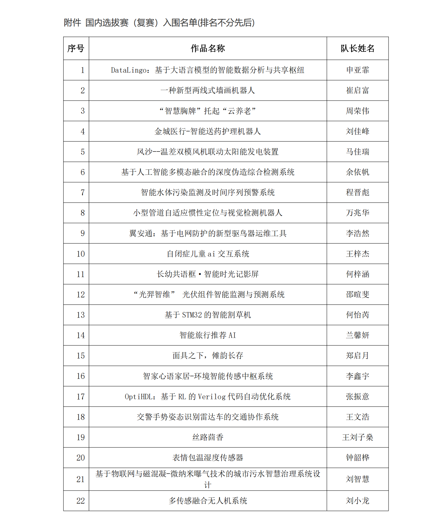 关于公布EduHacks 2025国际大学生创客马拉松大赛国内选拔赛(复赛)入围名单的通知