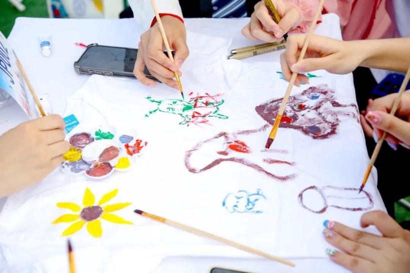 每个团队围绕出国研学主题,将自己喜欢的异国建筑图案、文字、人文照片等印在T恤上。在DIY和向他人展示成果的过程中,学员之间的联系得以增进,彼此的爱好得以深入了解,为后续携手出国研学奠定默契与信任的基础。
