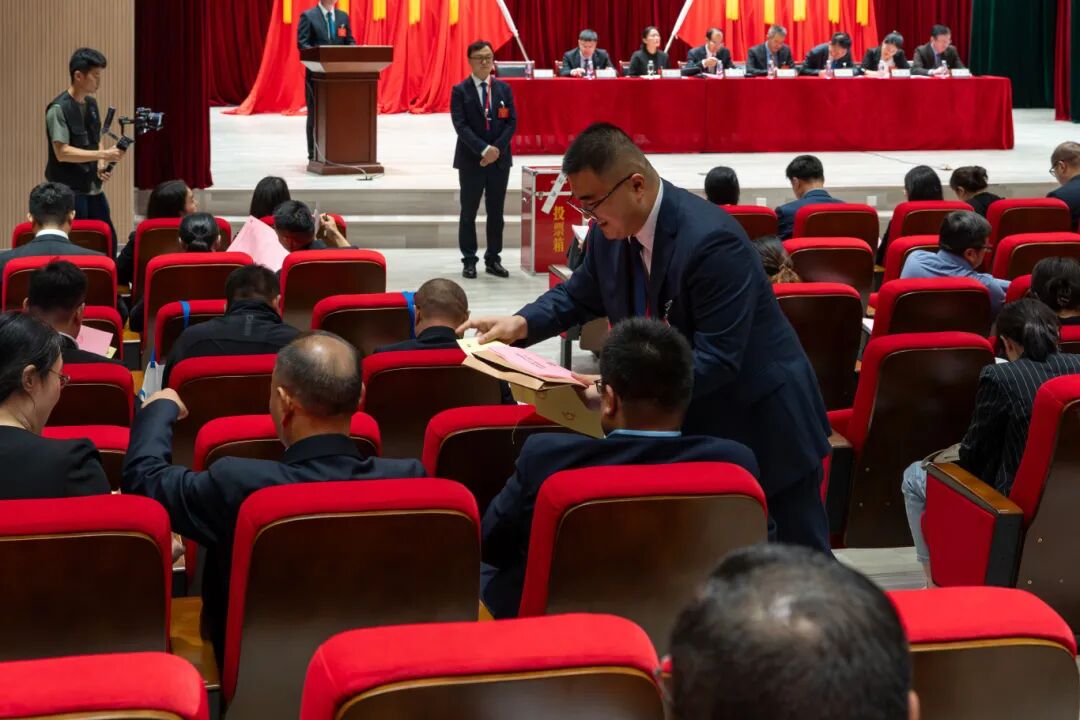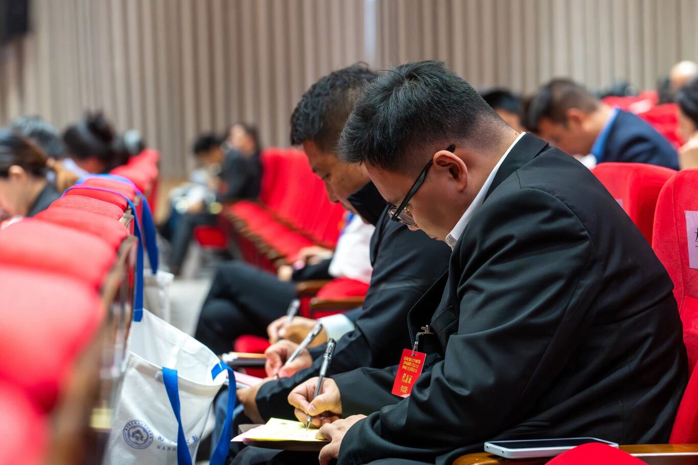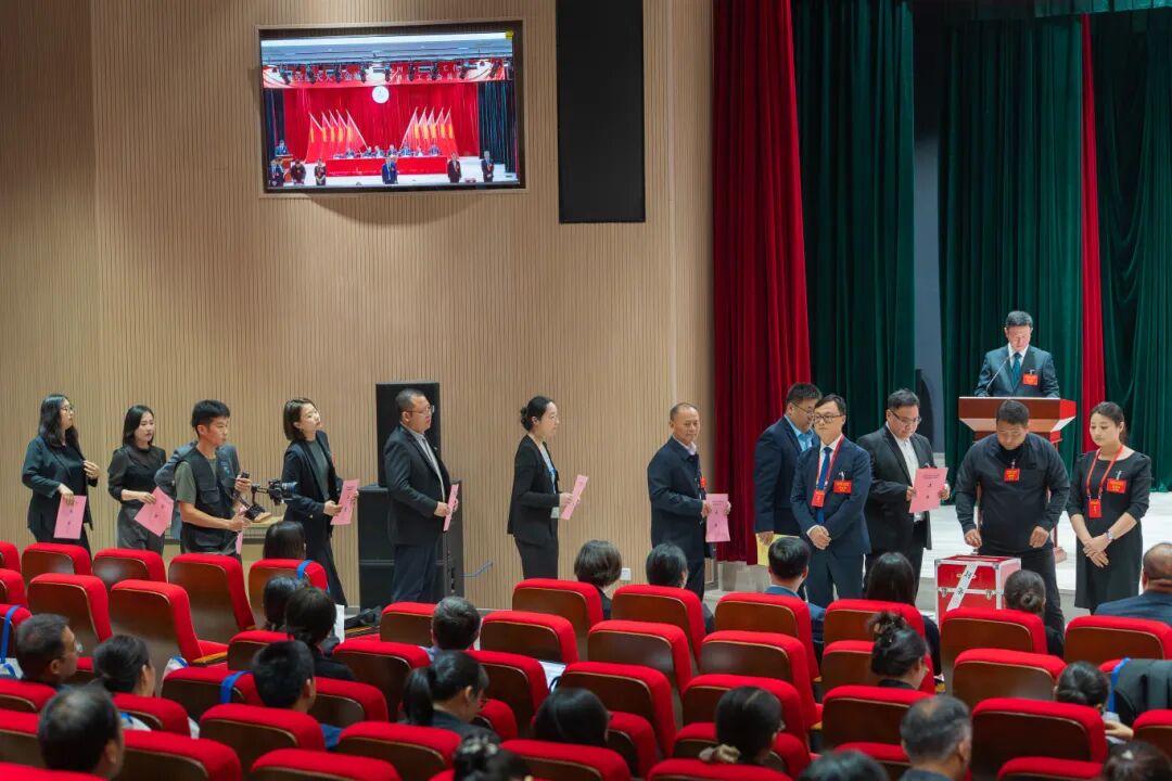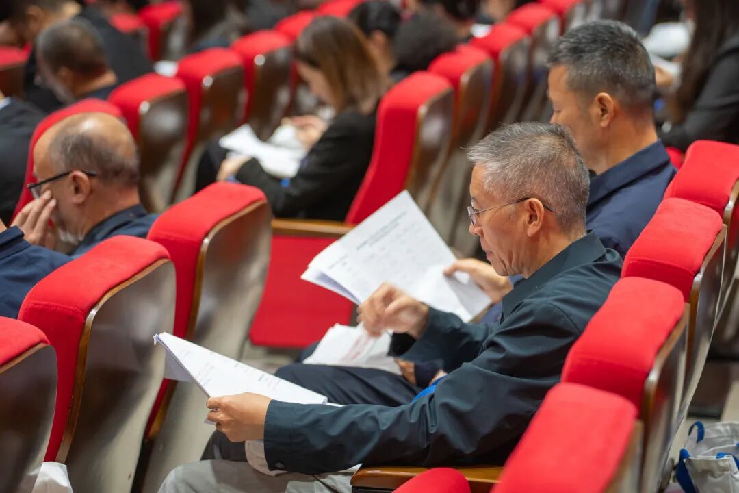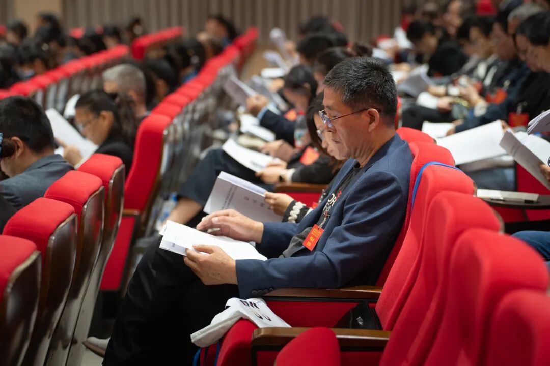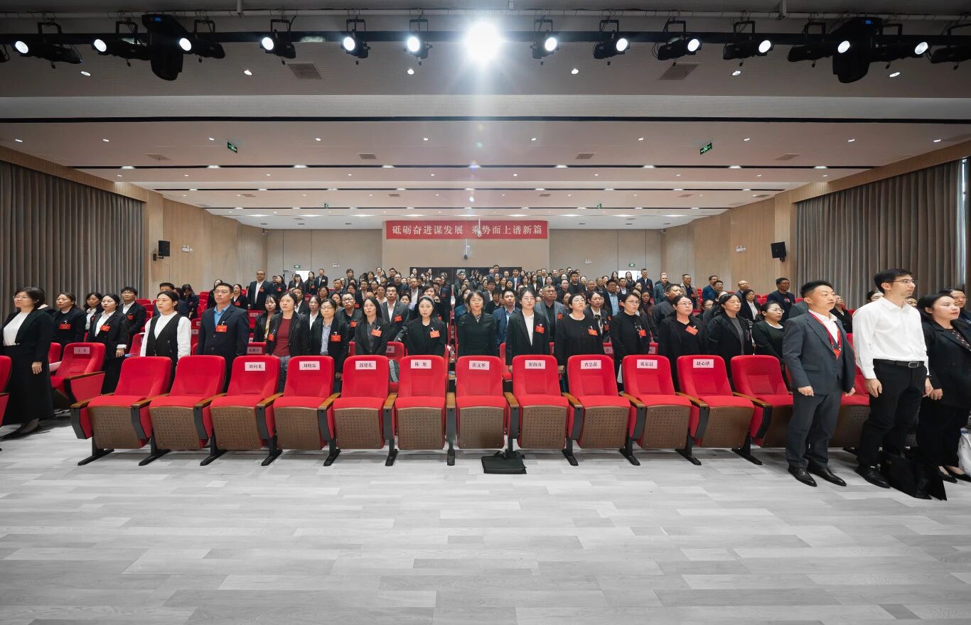 大会会场气氛庄严热烈,主席台正中悬挂校徽,10面红旗鲜艳胜火,分列两侧。会场上,“砥砺奋进谋发展 乘势而上谱新篇”的标语庄重醒目。