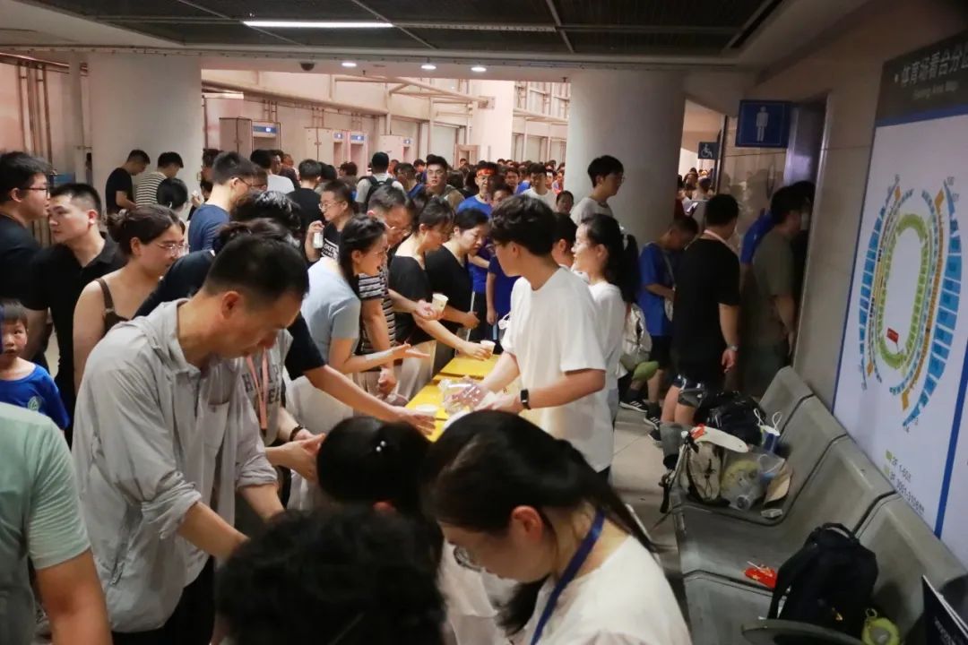 14:30,志愿者们出发前往南京奥体中心参加岗位实训,配合做好物资发放等工作。