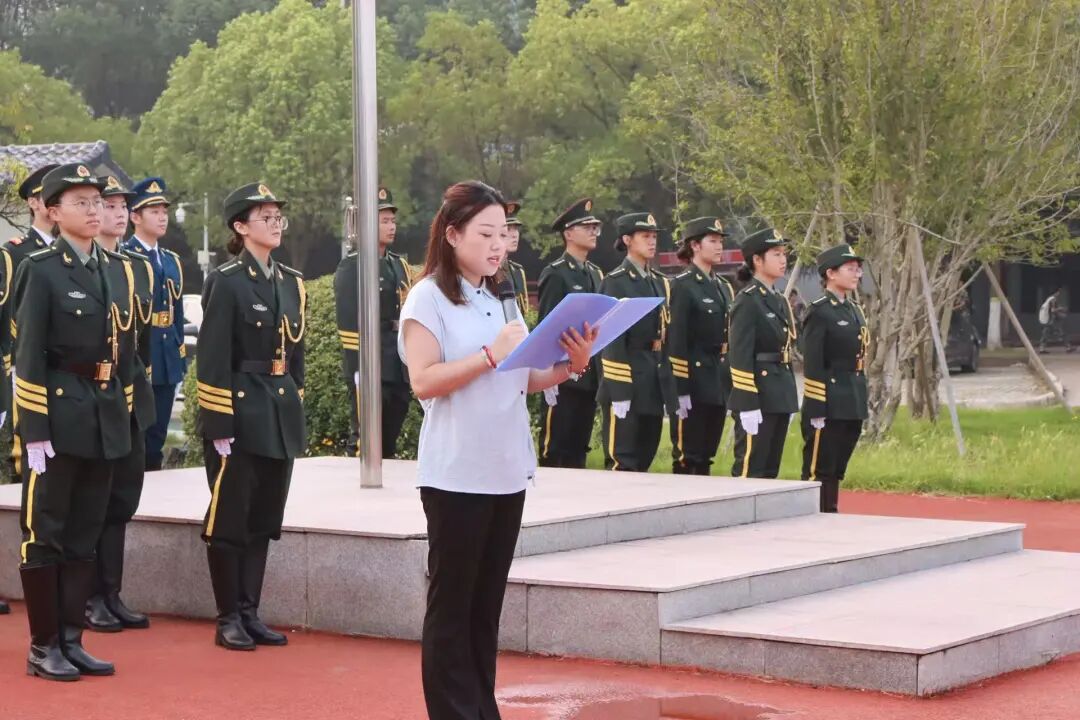清晨,秋日晨光遍洒校园,升国旗仪式现场气氛庄严肃穆。国旗护卫队迈着铿锵有力、整齐划一的步伐,庄严护送国旗入场。伴随着激昂的《义勇军进行曲》,全体师生肃然而立,向冉冉升起的五星红旗行注目礼,目光坚定而炽热,深切表达对祖国的崇高敬意与无限热爱。