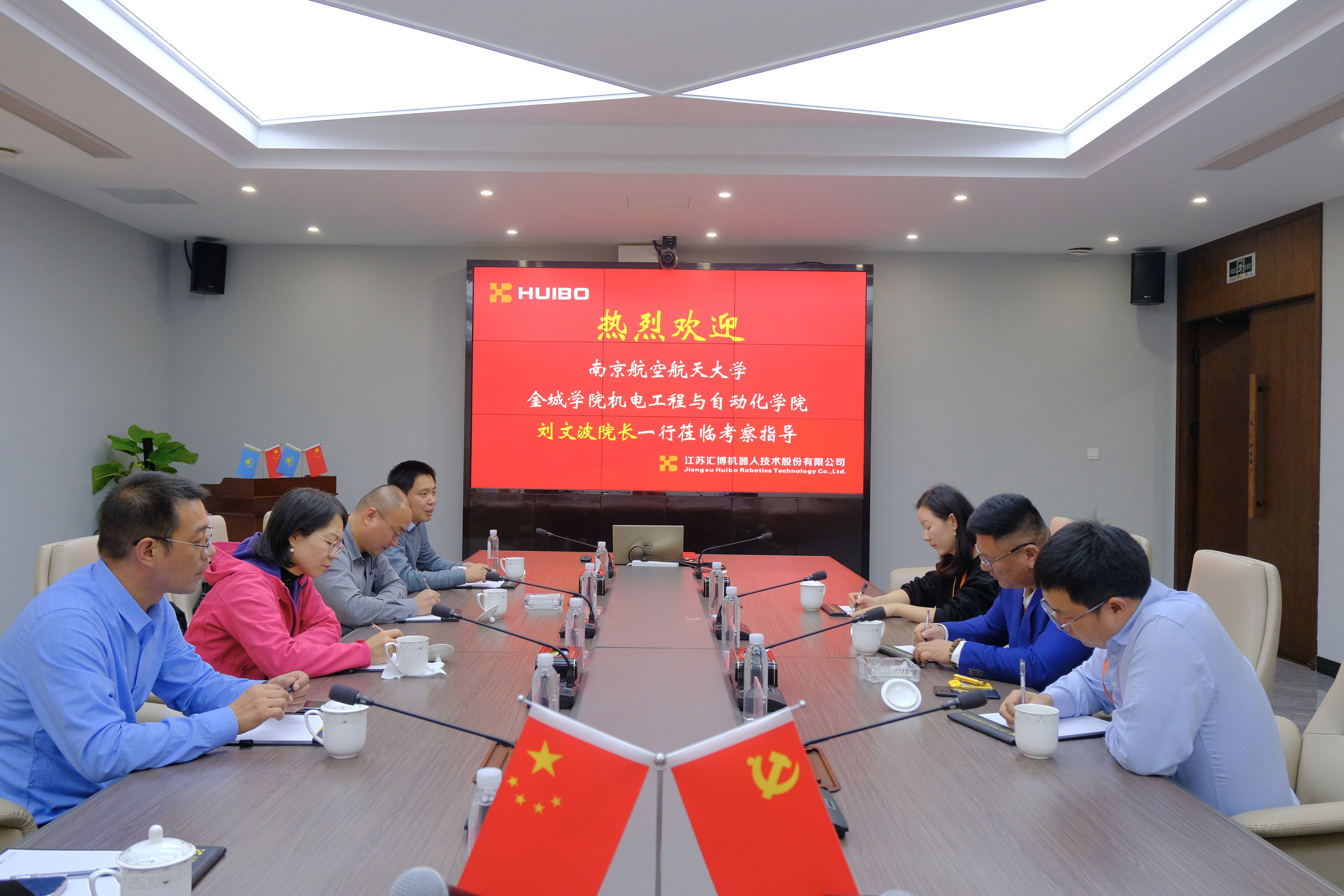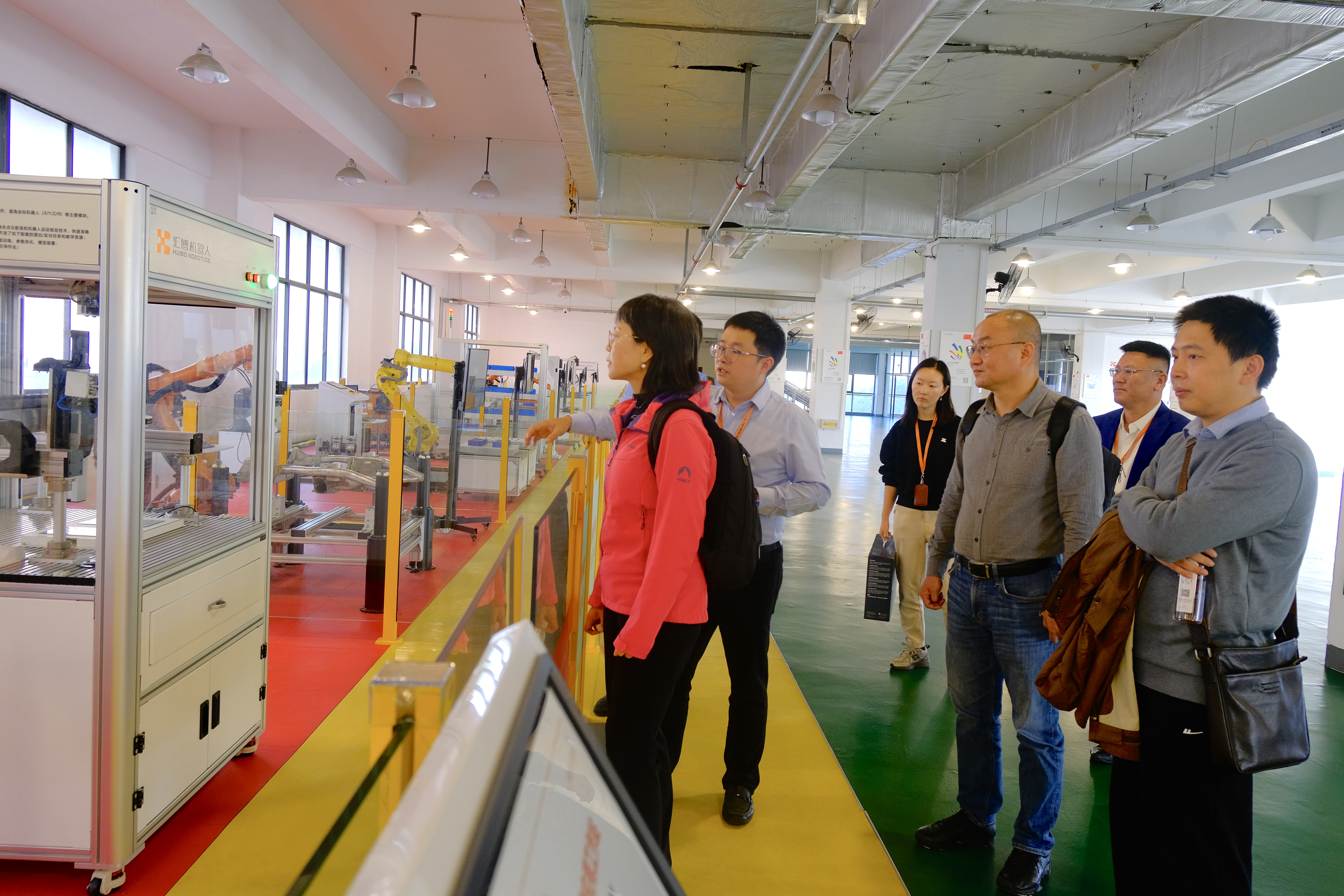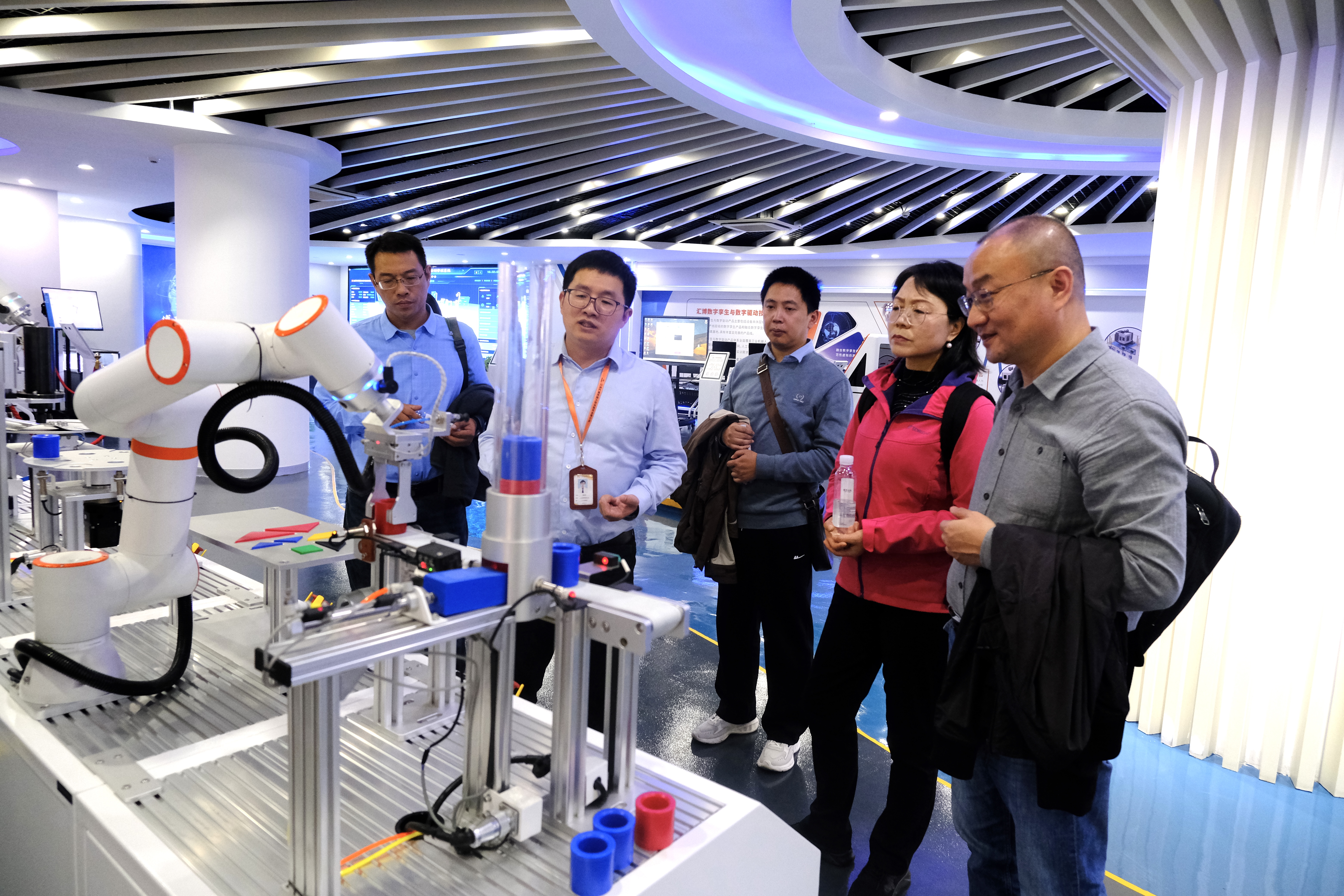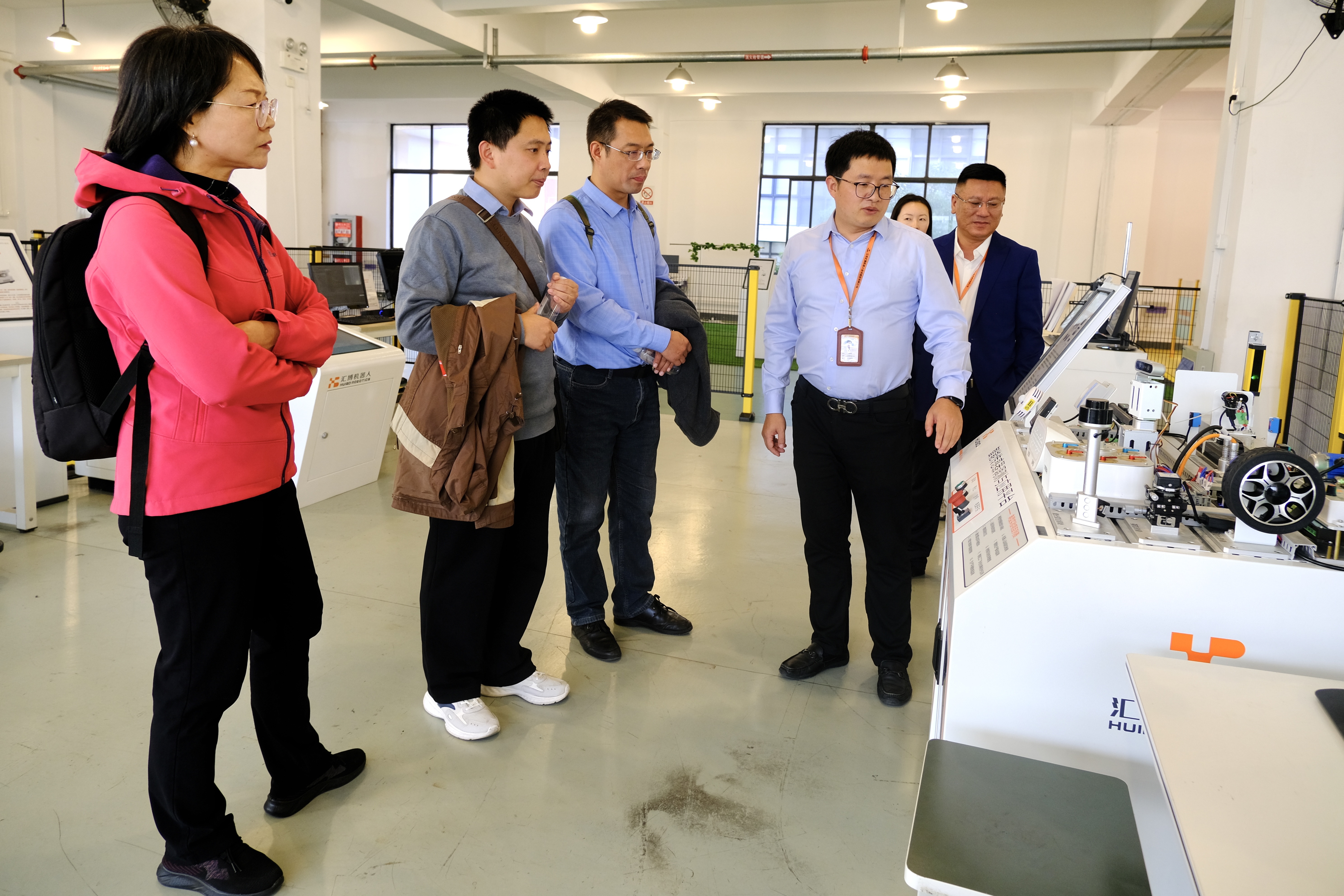 在陈劲军总监的引导下,刘文波院长一行首先参观了公司研发中心、智能制造生产线及机器人应用展示区,深入了解汇博机器人在智能制造、机器人系统集成、产业应用等方面的最新技术成果,并就行业发展趋势与技术创新进行了交流。