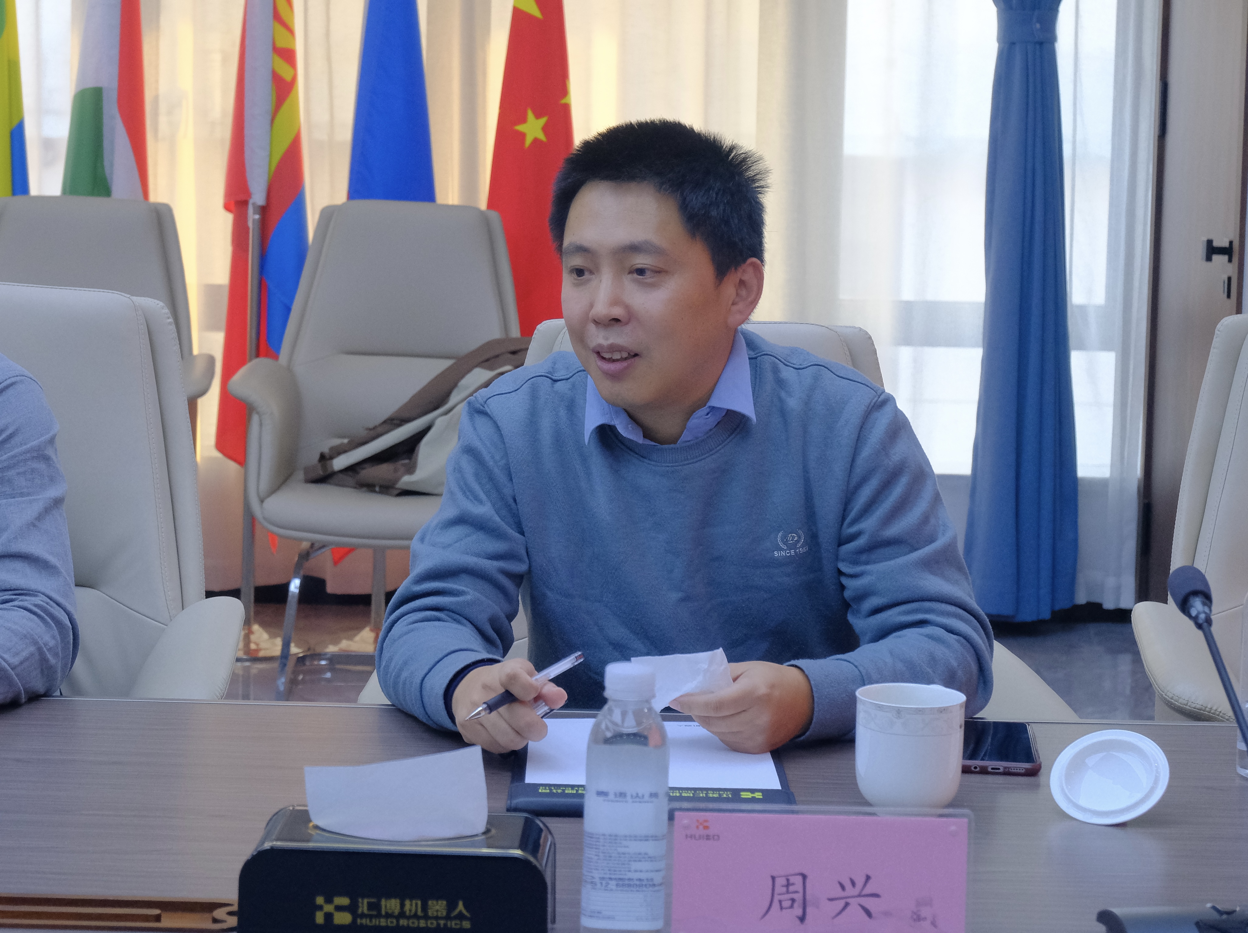 副院长黄继刚表示,汇博机器人产品与学院多个专业方向高度契合,建议围绕典型机器人应用场景共建高水平教学科研平台,并以赛项为引领,强化师生团队的技术整合与创新能力。实验室主任张建兵、教师周兴也分别就PLC实验室建设、课程体系优化及学生技能培训等具体内容提出了合作建议。